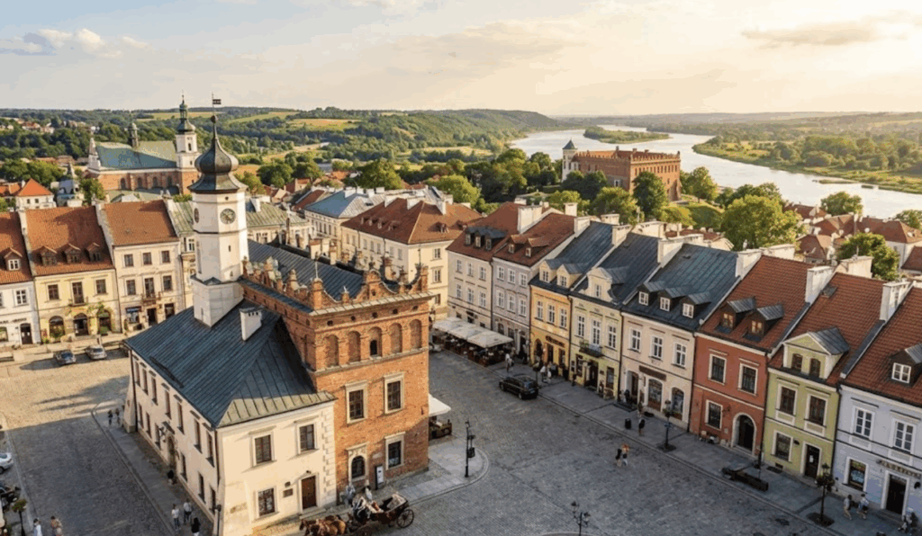What Makes It Special: The cobblestone Market Square serves as the town’s beating heart, surrounded by colourful merchants’ houses with distinctive sgraffito decorations. Perched above the town are the atmospheric ruins of a medieval castle and tower, offering stunning views across the Vistula valley.